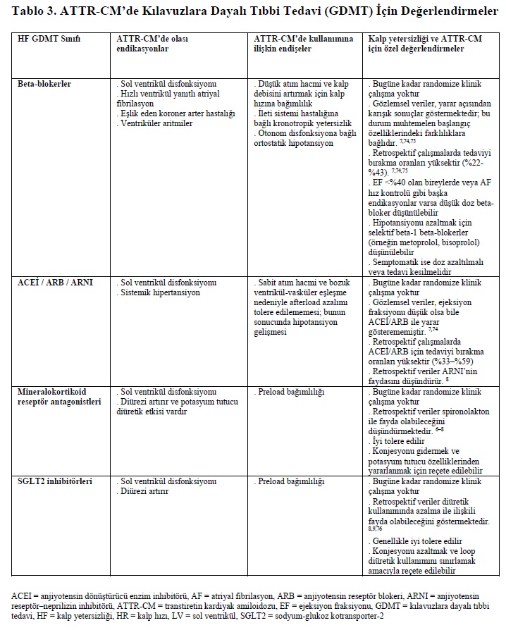 - GDMT (Kılavuzlara Dayalı Medikal Tedavi): Klinik uygulama kılavuzları tarafından kullanımına destek verilen ve ATTR-CM’li bireylerde kullanımına ilişkin özel hususları içeren tedavi seçeneklerini ifade eder.